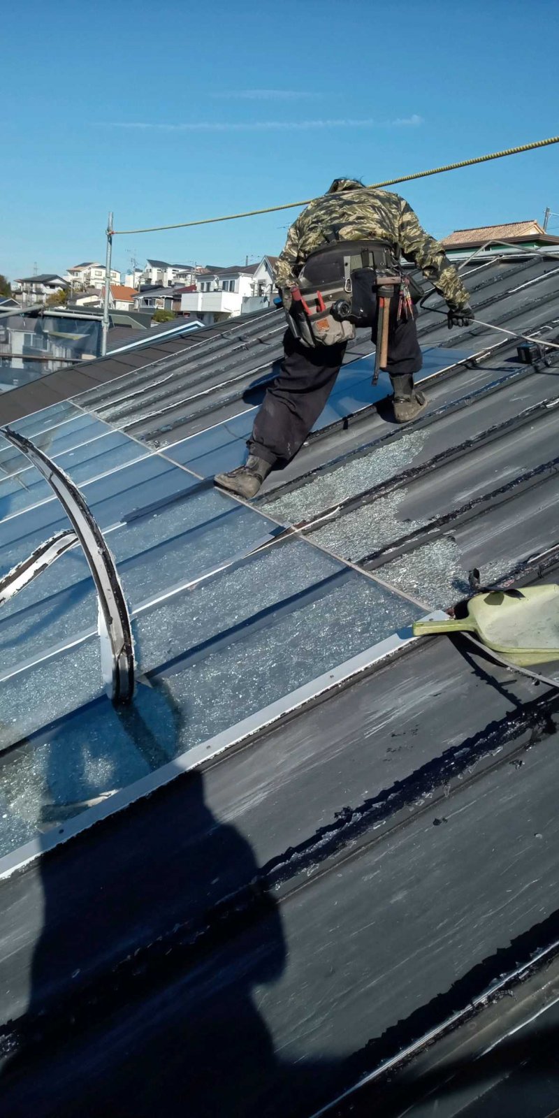 もう一軒はガラスに太陽熱暖房システムが付いているお住まいの屋根張り替えでした。