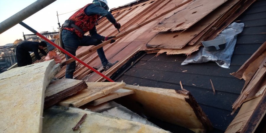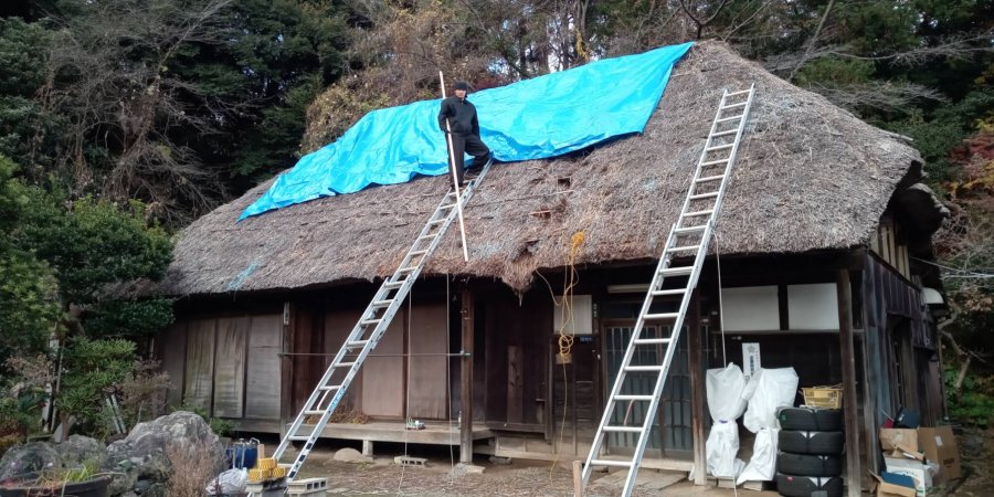 茅葺き屋根の古民家は屋根を撤去して造り替える予定です。それまで雨から守る為に